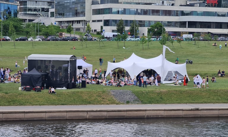 Paviljonai, palapinės ir kiti šventiniai reikalai.
