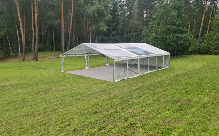 Palapinių nuoma: nuo 9 iki 200 kv. m. Galime uždengti net iki 500 kv. m. plotą.