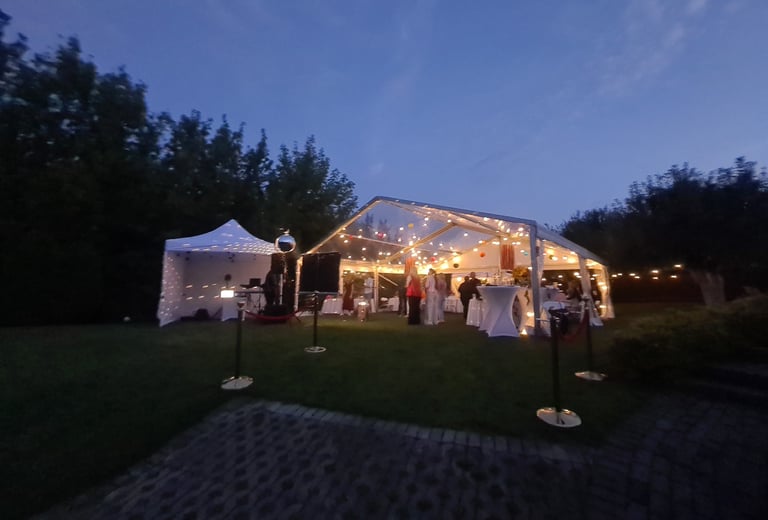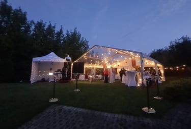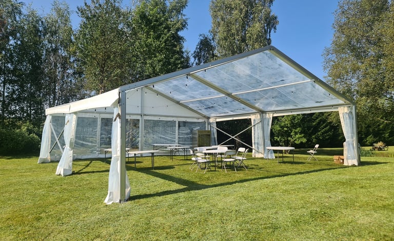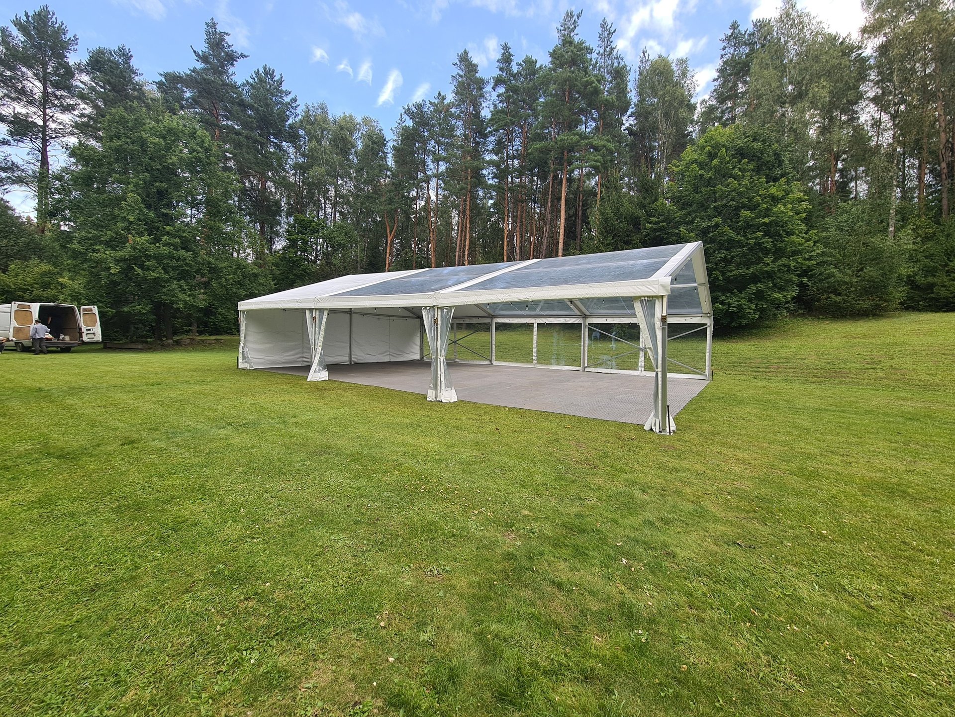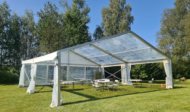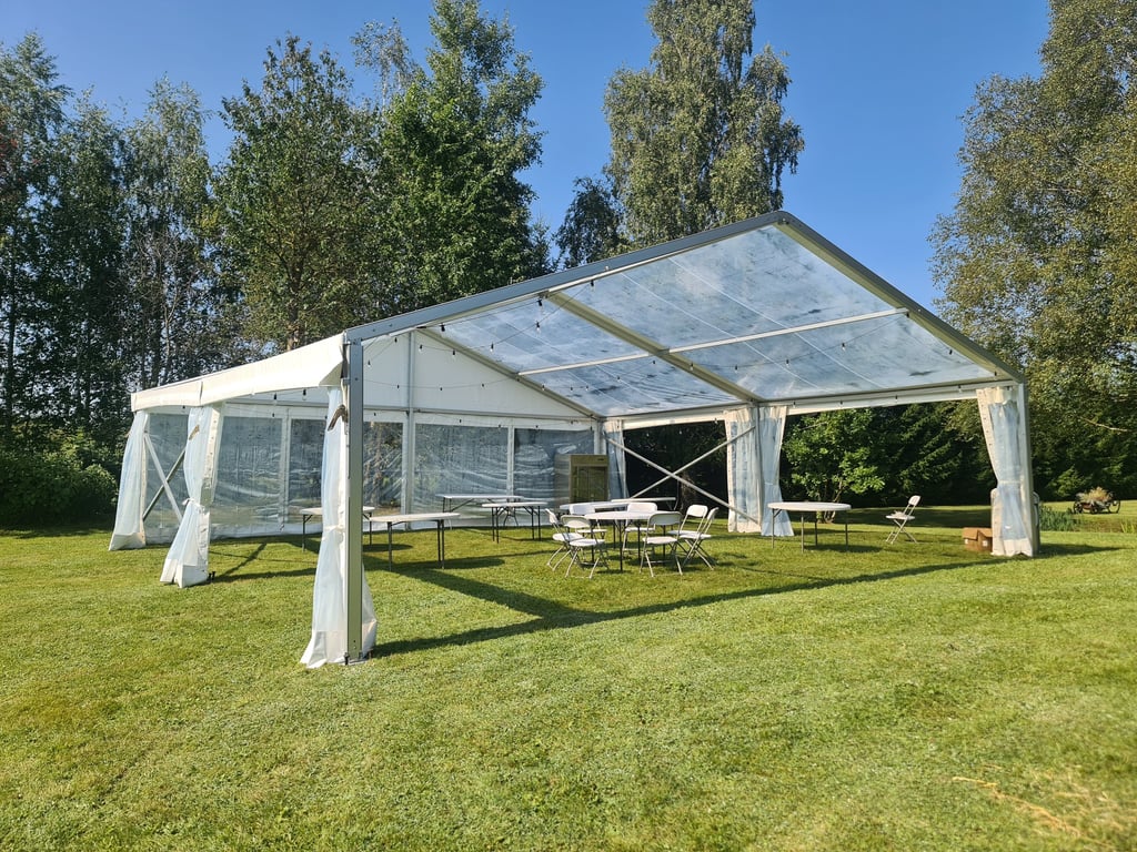 Sienos: Galima rinktis skaidrią plėvelę su langais arba vientisą tentą, atitinkantį renginio atmosferą.